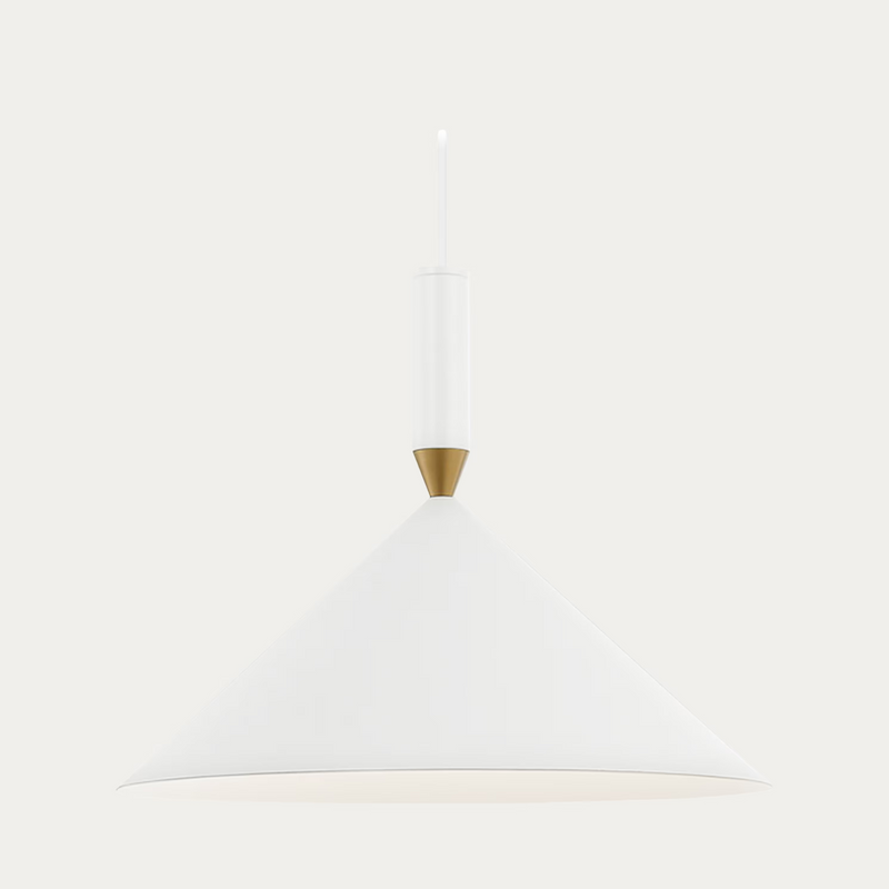 Adrian-valaisin hurmaa yksinkertaisella ja modernilla muotoilullaan. Kartiomainen varjostin levittää pehmeää, miellyttävää valoa, ja siro sylinterimäinen varsi messinkiyksityiskohdalla tuo kokonaisuuteen hienostunutta ilmettä. Valaisin sopii loistavasti esimerkiksi ruokapöydän tai olohuoneen ylle tuomaan tyyliä ja valoa.