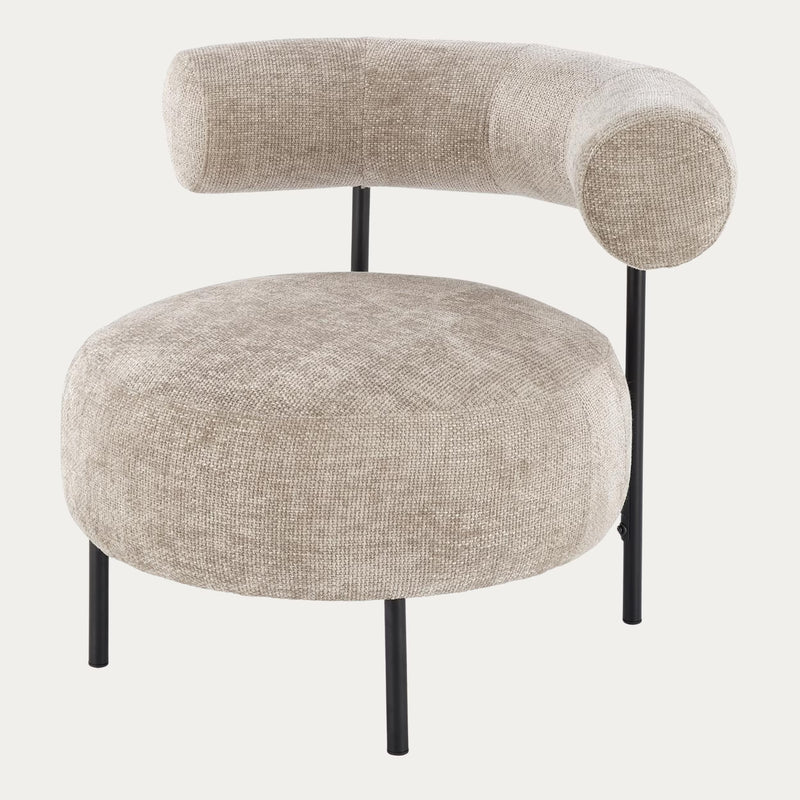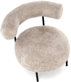Aria nojatuoli erottuu pyöreällä, pehmeällä istuimellaan ja ainutlaatuisella kaarevalla selkänojalla, joka tarjoaa tukea ja mukavuutta. Beige kangasverhoilu tuo raikkaan ja ajattoman ilmeen, joka sopii monenlaiseen sisustukseen.