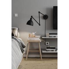 By Rydéns Bazar seinävalaisin tuo huoneeseen tyylikästä ilmettä ja toimivaa valaistusta. Ajattoman muotoilunsa ansiosta se sopii monenlaisiin sisustuksiin ja lisää tilan persoonallisuutta. Kolmella nivelellä varustettu rakenne mahdollistaa valon tarkan suuntaamisen – ensimmäinen nivel liikkuu sivuttaissuunnassa, kun taas kaksi muuta tarjoavat säätövaraa pystysuunnassa. Täydellinen valinta, kun tarvitset joustavaa ja näyttävää valoa.
