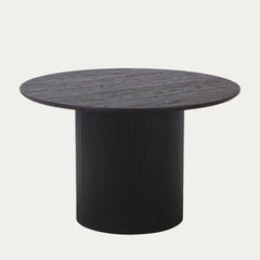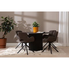 Tee vaikutus tällä näyttävällä tumma sävytteisellä ruokapöydällä, jossa yhdistyvät moderni muotoilu, rohkea väri ja veistoksellinen rakenne. Pyöreä pöytälevy luo luonnollisen keskipisteen ruokailutilaan, kutsuen keskusteluun ja yhteisiin hetkiin.