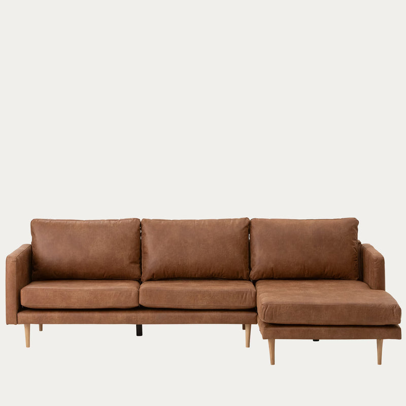 Copenhagen divaanisohva on konjakinruskea sävyltään, joka tuo lämpöä ja kodikkuutta sisustukseen. Sohva on verhoiltu bonded-materiaalilla, mikä antaa sille tyylikkään ja ajattoman ilmeen.