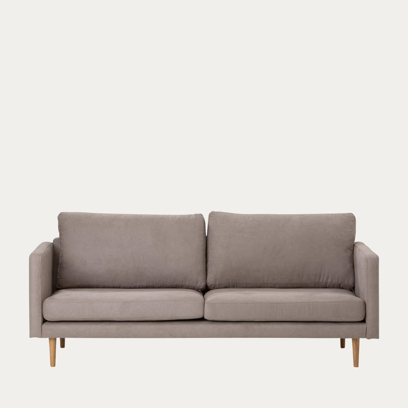 Tämä Scandic Collectionin sohva tarjoaa mukavan istumapaikan kolmelle. Sen hillitty greige -sävy sopii helposti erilaisiin sisustuksiin.