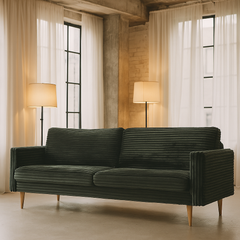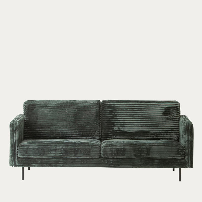 Copenhagen 3-istuttava ihanalla mega-sametilla. Paksu ja pehmeä sametti metsän vihreässä sävyssä tuo kotiin luonnonsävyt.