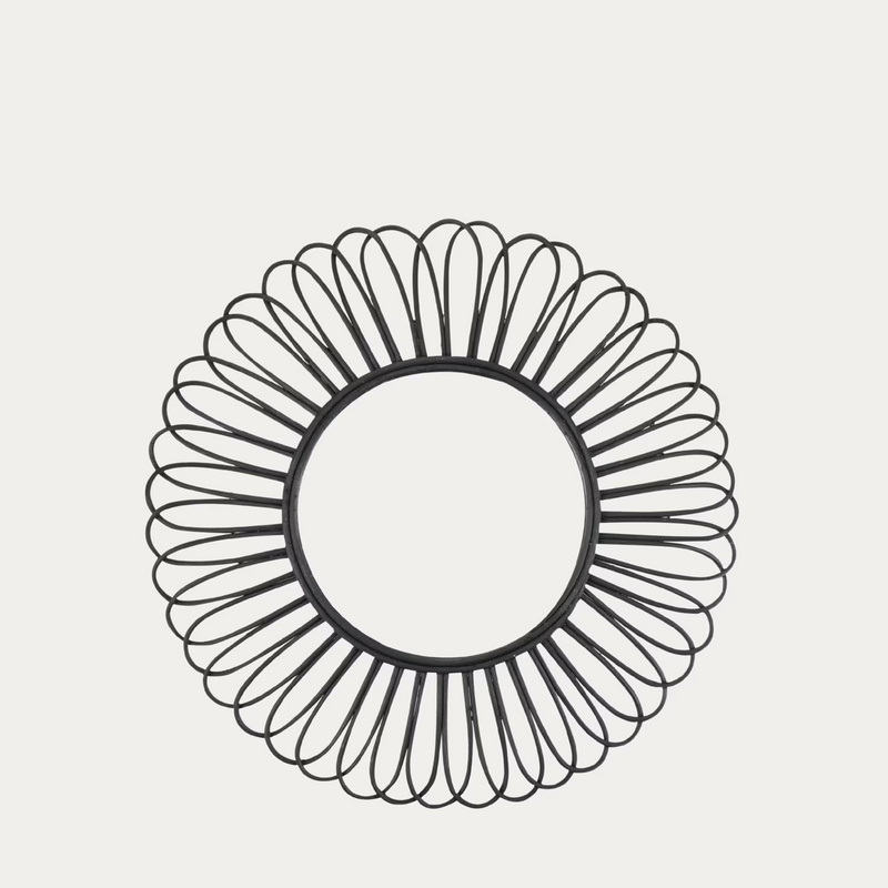 Tuo kotiisi näyttävyyttä ja persoonallisuutta tällä mustasta rottingista valmistetulla koristepeilillä. Peili avartaa tilaa ja heijastaa valoa, samalla kun rottinkikehys antaa sisustukseen luonnollisen ja tyylikkään viimeistelyn. Helppo yhdistää niin moderniin kuin klassiseenkin sisustukseen.