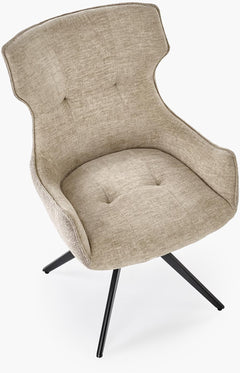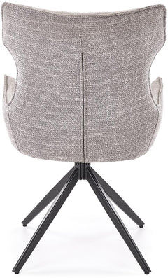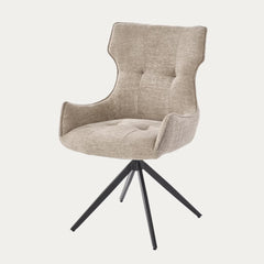 Elle ruokatuolissa on pehmeä verhoilu, joka tarjoaa miellyttävän istumiskokemuksen. Sen selkänoja on muotoiltu tukemaan hyvin ja istuinosa on mukavan leveä. Tuoli pyörii 180 astetta.