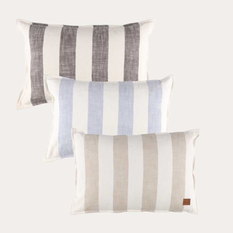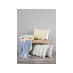 Fanni K Hanko-tyynyn klassinen ja kaunis kudottu raitakangas on raikas ja aina ajankohtainen. Materiaali: vetoketjulla irrotettava päällinen 100 % puuvilla ja täyte polyesteria. Koko: 60 x 40 cm, paksuus 10 cm. Pesu 40 astetta.