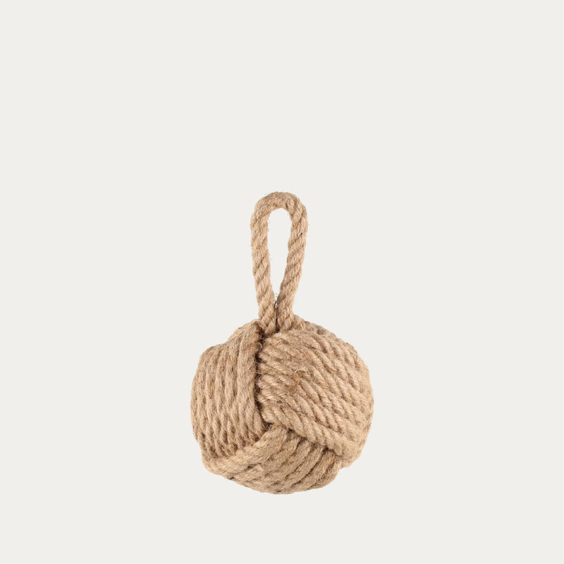 Hiekalla täytetty, hamppuköydestä valmistettu solmun muotoinen ovistoppari. Paino 1,2 kg.