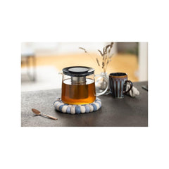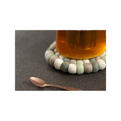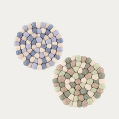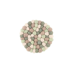 Koristeellinen pannunalunen on valmistettu huovutetuista villapalloista. Materiaali 100 % villa. Pintapesu kostealla liinalla.