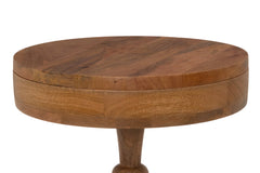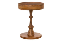 Fanni K Runon sivupöytä on pyöreä ja puunsävyinen, sopii hyvin pieneen tilaan lisäpöydäksi tai koristeeksi.