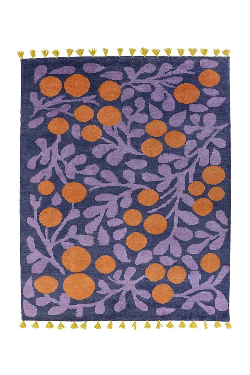 Terttu on valmistettu käsin solmimalla ylellisestä huippulaatuisesta uusseelantilaisesta villasta. Japanilaisen Eri Shimatsukan suunnittelema ylellinen ja leikkisä Terttu-matto on saanut inspiraationsa mystisen marjametsän tunnelmasta. Matossa voit nähdä oranssi-liloja marjoja tummansinisellä pohjalla. Maton ilmeen viimeistelee aksenttiväriset keltaiset hapsut.