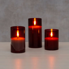 Finnlumorin lasikynttilöissä on kolme LED-kynttilää lasisissa kupeissa. Saatavana  punaisena, tyylikästä tunnelmaa kotiin ilman liekkiä.
