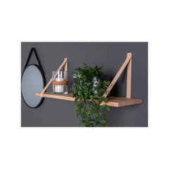 Tyylikäs ja ilmava seinähylly, jossa yhdistyvät luonnonmateriaalit ja moderni muotoilu. Vaaleasta puusta valmistettu hyllylevy ja konjakinruskeat nahkaremmit luovat lämpimän ja skandinaavisen ilmeen, joka sopii erinomaisesti niin keittiöön, olohuoneeseen kuin eteiseenkin. Hylly on saatavilla kahdessa eri pituudessa, joten voit valita juuri tilaasi sopivan koon tai yhdistellä useampia näyttäväksi kokonaisuudeksi. Täydellinen paikka kasveille, kevyille säilytyslaatikoille tai kauniille sisustusesineille.