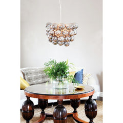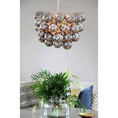 Valaisinta koristaa 32 kaunista, kiiltävää lasikuulaa, joiden ansiosta valo heijastuu tilaan lempeän lämpimänä. Yksityiskohtainen ja elegantti design tekee siitä katseita keräävän sisustuselementin.