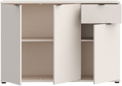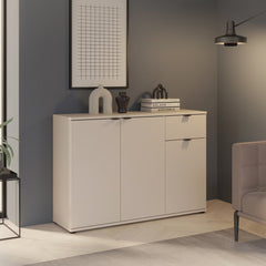 Kaarla senkki on suunniteltu tuomaan lisää säilytystilaa esimerkiksi eteiseen, olohuoneeseen tai makuuhuoneeseen. Se tarjoaa käytännöllisesti kolme ovea ja yhden laskettavan laatikon, joiden takana voit järjestää tavarat siististi piiloon. Senkki on kooltaan noin 120 cm leveä, 34 cm syvä ja 82 cm korkea, joten se sopii hyvin tiloihin, joissa tilaa on rajoitetusti.