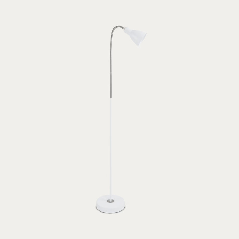Moderni minimalistinen lattiavalaisin. Yksinkertainen muotoilu ja suunnattava flexivarsi, jonka ansiosta helppo sijoittaa ja suunnata tarpeen mukaisesti. Upea valaisin esimerkiksi lukuvaloksi tuolin tai sängyn viereen.