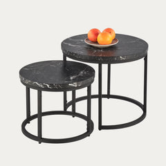 Luna sarjapöytä koostuu kahdesta eri kokoisesta pöydästä, jotka sopivat hyvin yhteen mutta voidaan sijoittaa myös erikseen. Sarjassa on käytetty mustaa metallirunkoa tukemaan pyöreää kansilevyä.