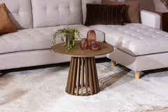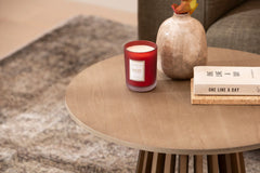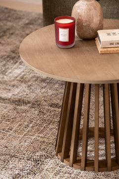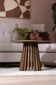 Lyon-sohvapöytä yhdistää pyöreän kannen ja näyttävän tukevarakenteisen jalustan, joka tuo tilaan luonnollista lämpöä ja selkeää ilmettä.