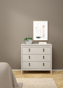 Madrid-lipasto on käytännöllinen säilytysratkaisu kashmirin sävyisenä. Kolmella laatikolla saat tavarat järjestykseen ja kätevästi esille.