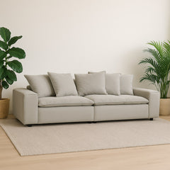 Tilava istuin, runsaat tyynyt ja ylellisen pehmeä muotoilu tekevät sohvasta oikean löhöilijän unelman. Syvyyden ansiosta sohvalla voi istua rennosti, käpertyä kirjan kanssa tai vaikka ottaa nokoset. Modernin selkeälinjainen ilme ja laadukas verhoilu viimeistelevät kokonaisuuden, joka sopii niin suureen olohuoneeseen kuin minimalistiseen kaupunkikotiin.