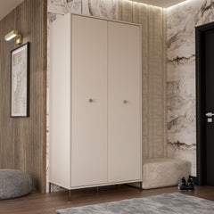 Minea-vaatekaappi on hiekansävyinen ja hillitty ratkaisusi järjestykseen. Sen kompakti koko sopii hyvin kodin eri tiloihin.