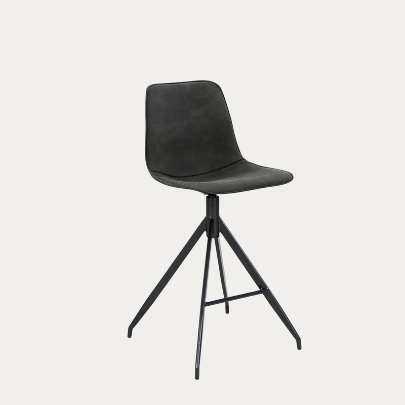 Tuo keittiöön tai baaritilaan tyylikkyyttä ja mukavuutta tällä modernilla baarituolilla. Musta, hieman mattaistuiminen verhoilu yhdistyy tukevien metallijalkojen minimalistiseen rakenteeseen. Kolmijalkainen muoto antaa tuolille keveyttä ulkonäköön, mutta säilyttää samalla vakauden. Istuimen kaareva selkänoja ja jalanlepuuttaja lisäävät käyttömukavuutta. Erinomainen valinta niin moderniin kuin teollistyyliseen sisustukseen.