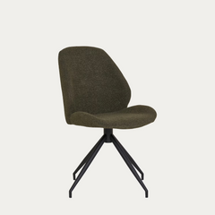 Tuo ruokailutilaan modernia mukavuutta tällä tyylikkäällä ja käytännöllisellä ruokatuolilla. Pehmeä bouclé-kangas ja ergonomisesti muotoiltu istuin tarjoavat erinomaisen istuinmukavuuden. Pyörivä mekanismi tuo lisää toiminnallisuutta esimerkiksi ruokapöydän ääressä tai kotitoimistossa. Mattamustat metallijalat antavat tuolille tukevan rakenteen ja viimeistelevät ajattoman ilmeen. Vihreä sävy tuo luonnonläheistä tunnelmaa tilaan.