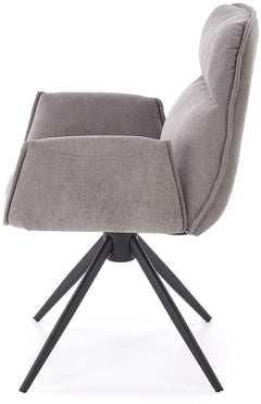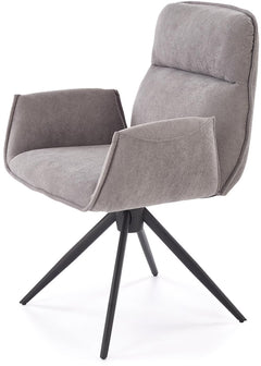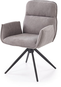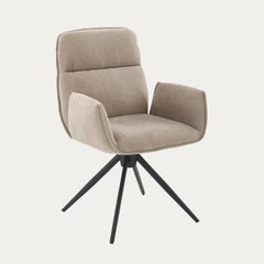Noelle ruokatuoli tarjoaa mukavan istuinmukavuuden pehmustetulla selkänojalla ja tukevilla käsinojilla. Saatavilla harmaana ja beigenä.