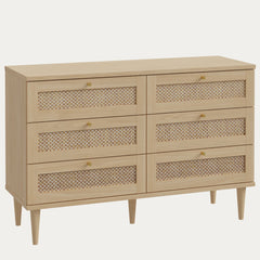 Paju-lipasto erottuu tammen ja rottinginkuvioinnin yhdistelmällä. Siinä on kuusi vetolaatikkoa ja se sopii tilaan, jossa arvostetaan luonnonläheistä ilmettä.