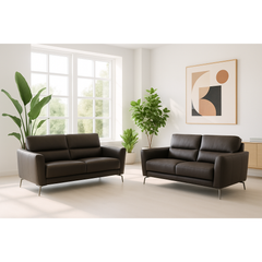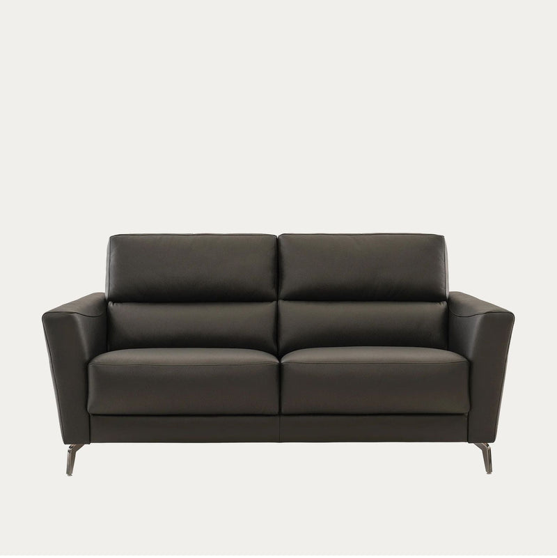 Tämä tyylikäs ja moderni nahkasohva luo huoneeseen elegantin ja ajattoman ilmeen. Sohvan hieman normaalia korkeampi selkänoja tarjoaa erinomaisen tuen, joka mahdollistaa ryhdikkään ja mukavan istuma-asennon pitkään istuessa. Nahka on paitsi kestävää ja helppohoitoista, myös ylellisen näköistä, mikä tekee tästä sohvasta täydellisen valinnan niin moderniin kuin perinteisempäänkin sisustukseen. Sohvan selkeälinjainen muotoilu ja laadukas materiaali tekevät siitä käytännöllisen ja esteettisen valinnan jokaiseen olohuoneeseen.
