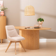 Pyöristetyt muodot tekevät pöydästä kevyen ja kutsuvan, ja se sopii erinomaisesti niin perheen yhteisiin ruokailuhetkiin kuin tyylikkäisiin illalliskutsuihin. Kestävä rakenne ja ajaton muotoilu takaavat pitkäikäisen käyttönautinnon.