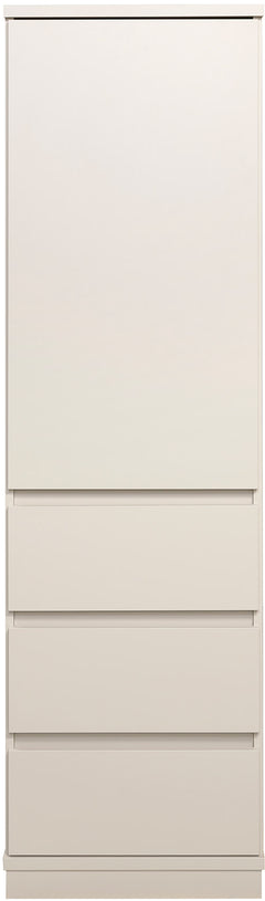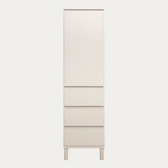 Sata nro 111 -korkea vitriini on saatavissa valkoisen, ruskean, tammen ja greigen sävyissä jossa on tilaa monenlaisille tavaroille eri kätisyys- ja jalkavaihtoehdoilla.