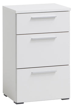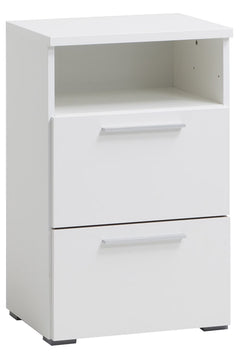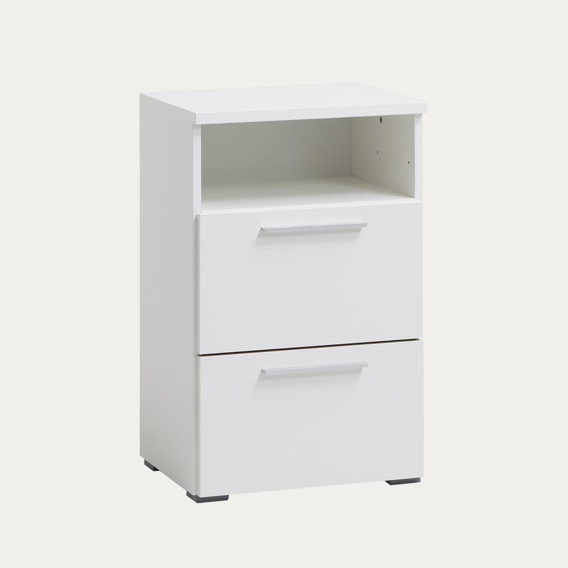 Valkoinen Smart-lipasto 45 cm leveänä, jossa käytännöllinen avohylly tai vetolaatikko yläosassa. Näppärä säilytysratkaisu pieneen tilaan.