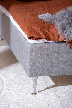 Sopraano runkosänky 90x200 cm harmaalla verhoilulla ja valinnaisilla kovuuksilla sekä eri petauspatjavaihtoehdoilla mukavaan nukkumiseen.