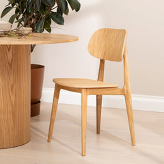 Tämä elegantti ruokatuoli yhdistää luonnollisen tammen kauniin pintakuvion ja ajattoman muotoilun harmoniseksi kokonaisuudeksi. Tuolin selkeä ja kevyt siluetti istuu täydellisesti moderniin, skandinaaviseen tai rustiikkiseen sisustukseen ja tuo ruokailutilaan lämpöä ja tyyliä.