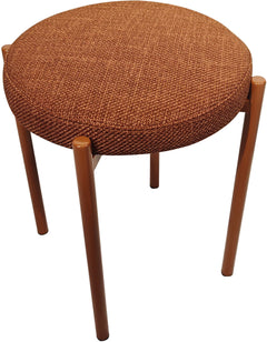 Tämä jakkara on ruosteenoranssin sävyinen ja verhoiltu pehmeällä kankaalla, joka tekee siitä viihtyisän. Rungon valmistuksessa on käytetty metallia ja vaneria, ja istuimessa on pehmeä vaahtomuovityyny, joka lisää käyttömukavuutta. Style-verhoiltua jakkaraa on saatavilla myös harmaana, beigenä ja vihreänä, joten väriä voi valita sisustukseen parhaiten sopivan mukaan.
