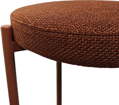Tyylikäs ja käytännöllinen Style-verhoiltu jakkara ruosteenoranssina, jolla on noin 44 cm korkea istuin ja tukeva metallirunko.