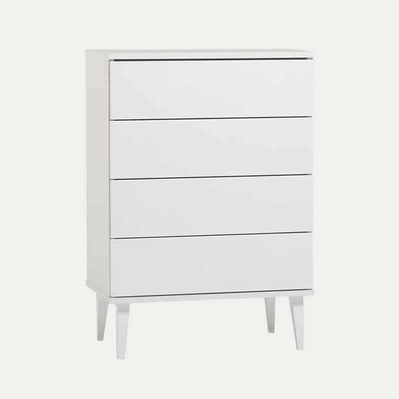 Runko MFC-kalustelevy 18 mm ja etusarjat maalattua MDF-levyä. Jalat maalattua massiivipuuta.