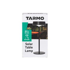 Aurinkokennolla varustettu pöytävalaisin terassille, parvekkeelle yms. Myös pistorasiasta lataaminen onnistuu mukana tulevalla USB-C kaapelilla. Valon sävyä (3000-6000K) ja valotehoa pystyy vaihtamaan hipaisukytkimestä. On/off -kytkin. Latausaika: aurinkopaneelilla 10h ja USB-C:llä 2.5-3h. Toiminta-aika täydellä latauksella: 5h täydellä valoteholla. Akku: 3.7V, 1800mAh Li-ion (18650). DC 5V, 1,5W. Takuu 2 vuotta.