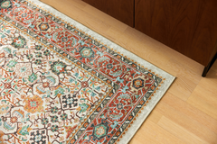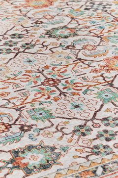 Jalokivi-matto on valmistettu 100% polyesteristä ja kuvio on digiprintattu. Maton nukassa on kaunis kiilto ja ylellisen silkkinen tuntu. Matossa on lankakanttaus ja pohjassa PVC-pisteet liukuesteenä. Hoito-ohjeena laakavesipesu pesulassa. Koristeellinen Jalokivi-kuosi on saanut innoituksensa näyttävistä itämaisista matoista, joiden symmetrisissä yksityiskohdissa riittää tutkittavaa ja ihailtavaa. Jalokivi-matossa korumainen kuosi yhdistyy lumoavan hehkuviin väreihin.