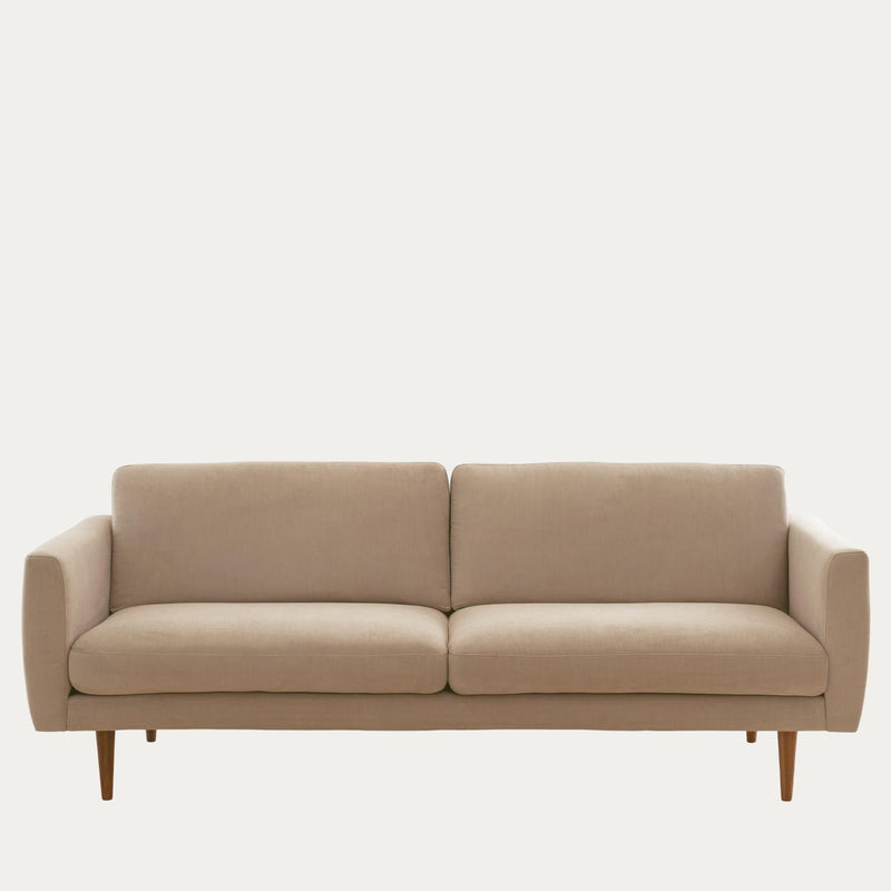 Zara 3-istuttava sohva hurmaa ajattomalla ja klassisella muotoilullaan, joka sopii saumattomasti monenlaiseen sisustustyyliin. Sohvan pelkistetty ilme ja siro jalkarakenne luovat kevyen ja elegantin vaikutelman, joka tuo tilaan avaruutta ja tyyliä.